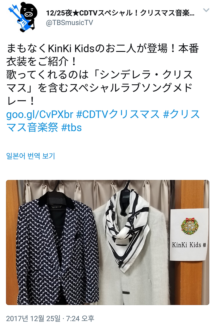 [KinKi Kids] 12/25 CDTV 크리스마스 음악제 의상