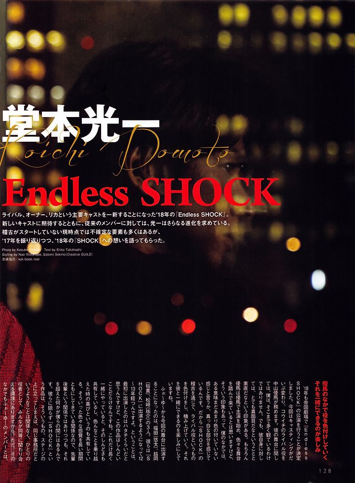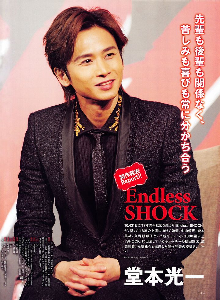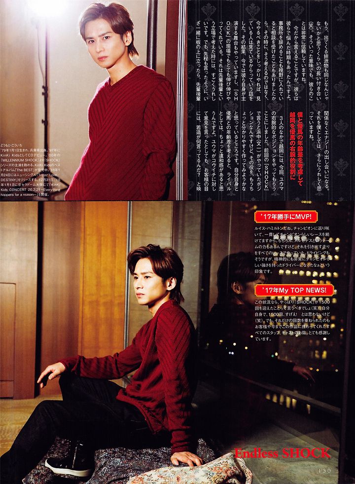 「SHOCK」와는 별도로 개인적인 부분에서 '17년을 돌아보면, 이치무라 마사치카상이나 이노우에 요시오상과 교류 할 수 있었던 것은 제게 있어서 상당히 자극이 되었습니다. 요시오군은 동갑이고 게다가 큰 무대에서 몇 작이나 좌장으로서 하고 있는 사람. 그렇기 때문에 저희들 사이에는 서로 알 수 있는 부분이 있습니다. 그런 사람이란 사실은 동년대에는 그렇게 많지는 않은. 그런 의미에서도 자신에세 있어서는 매우 귀중한 존재이네요.