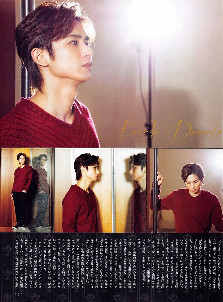 ■ 코이치: ..."그쵸"가 아니라구ㅎㅎ 뭐 하지만 그들은 정말로 오랫동안 함께 하고 있어서 「SHOCK」에 대해서도 잘 알아주고 있고, 도모토 코이치라고 하는 부분으로서도 잘 알아주고 있는. 저는 포유에 대해서는 잘 알지는 못합니다만.