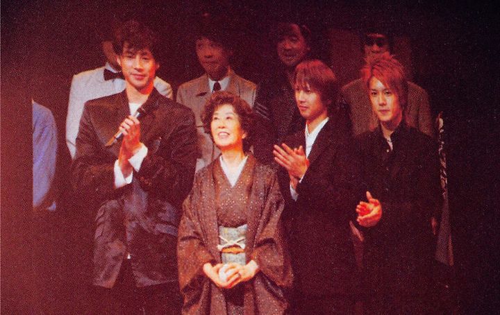 ─ 여기서 소개하고 싶은 사진이 있습니다. 「SHOCK」는 '18년 공연에서 1600회를 맞이합니다만 지금까지 단독 주연으로 1600회를 계속해오신 분은 역시 이분밖에 안계십니다. 스크린을 봐주세요. (스크린에 모리 미츠코와 히사기야마 노리유키, 코이치, 타키자와 히데아키의 사진이 비치고 있다.) 모리 미츠코상입니다. 모리상이 「방랑기」로 1600회를 맞이했을 때의 커튼콜의 1장입니다. 하카타자까지 축하하러 달려가셨지요.
