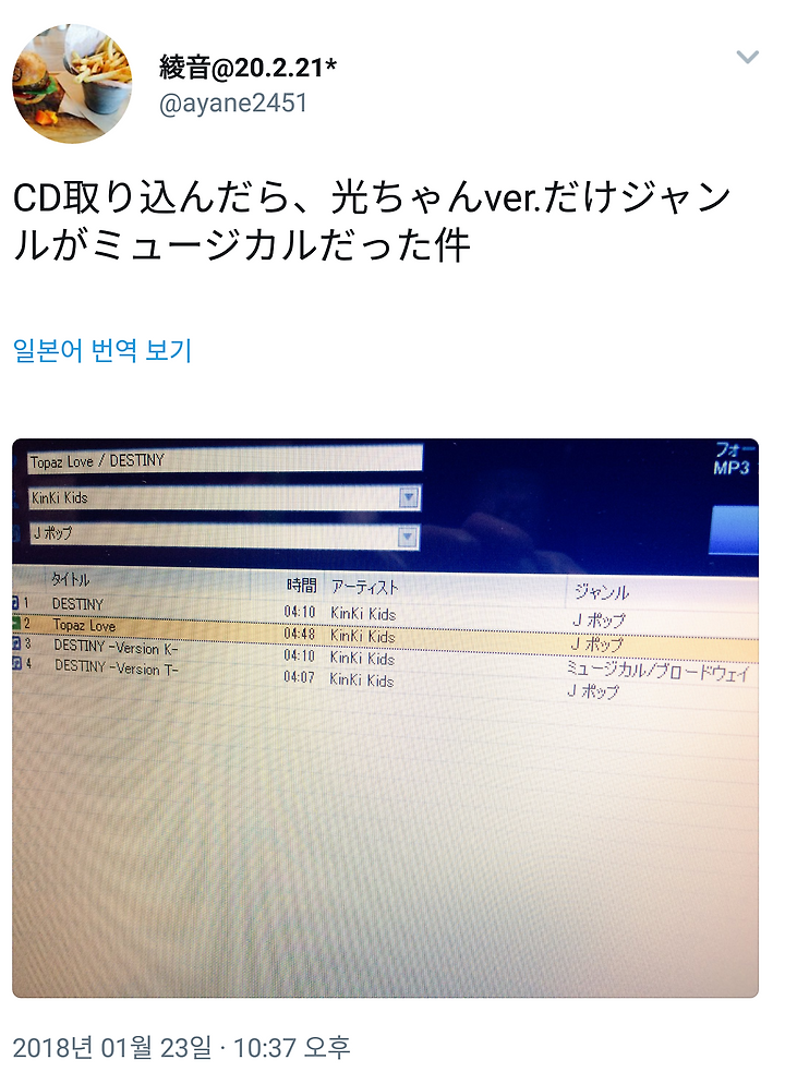 CD取り込んだら、光ちゃんver.だけジャンルがミュージカルだった件