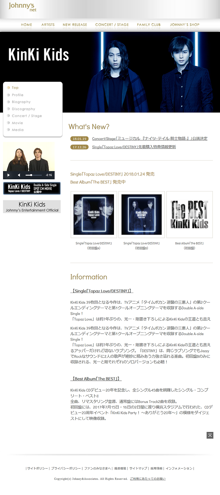 [KinKi Kids] 1/24 J-net「Topaz Love/DESTINY」발매 코멘트 D-0 ver