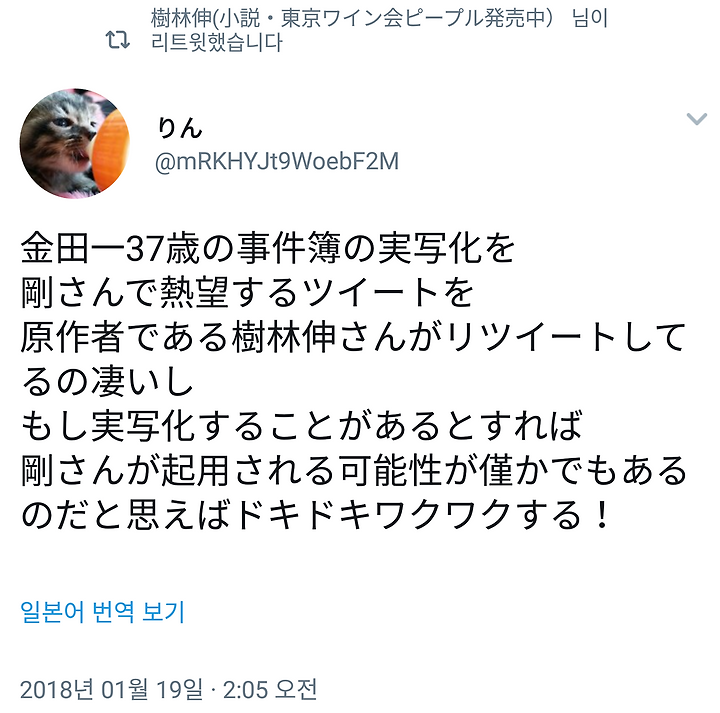 원작자인 키바야시 신상이 리트윗 하고 있다는 게 굉장하고