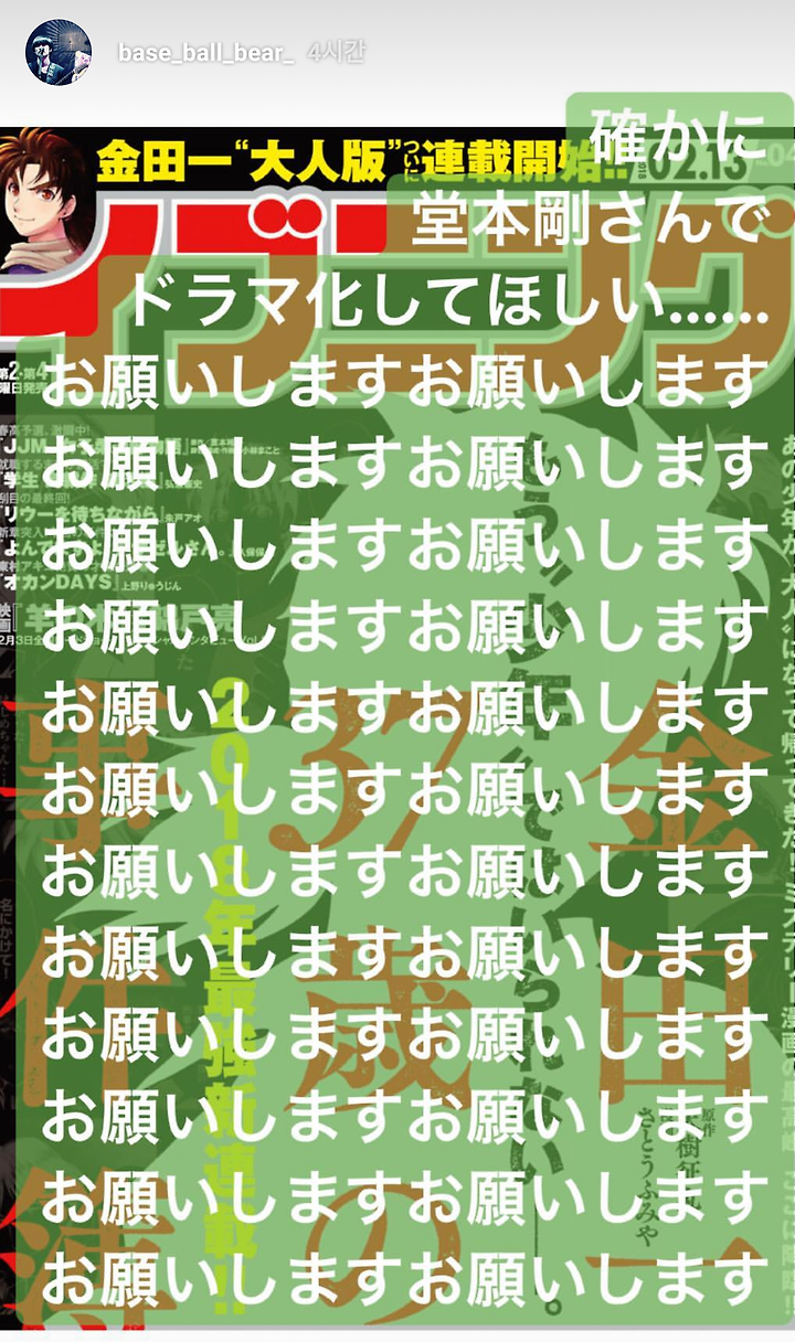 金田一37歳堂本剛、実写化っていうのが実現してくれる事を願います。