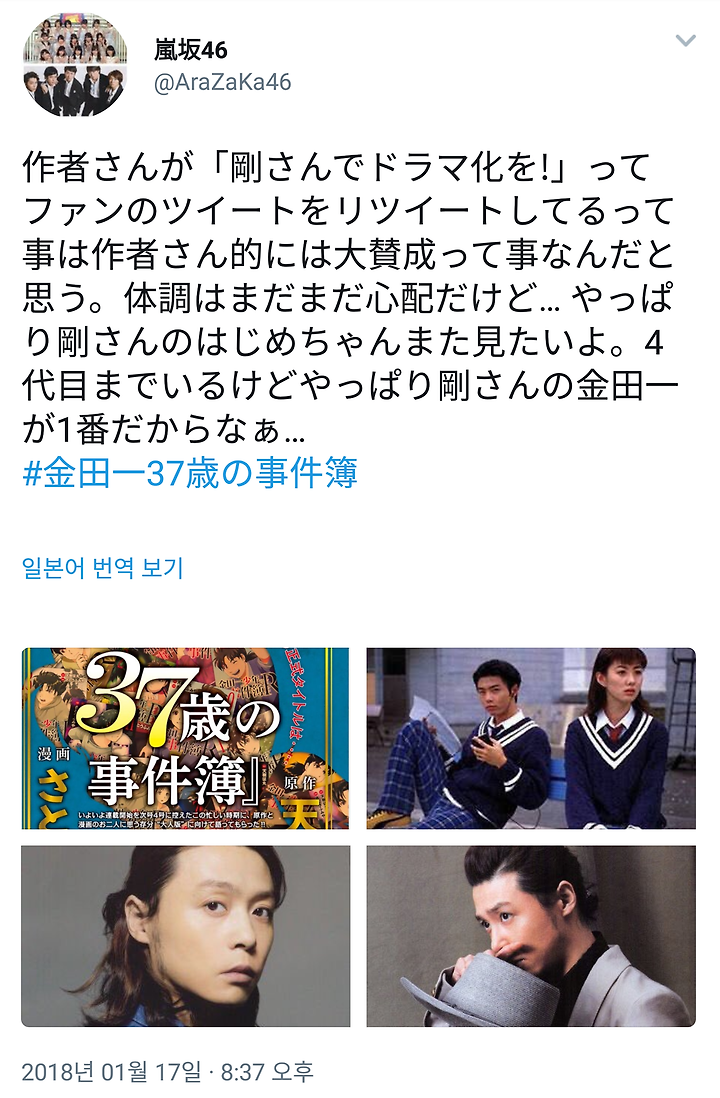 作者さんが「剛さんでドラマ化を!」ってファンのツイートをリツイートしてるって事は作者さん的には大賛成って事なんだと思う。体調はまだまだ心配だけど… やっぱり剛さんのはじめちゃんまた見たいよ。4代目までいるけどやっぱり剛さんの金田一が1番だからなぁ…