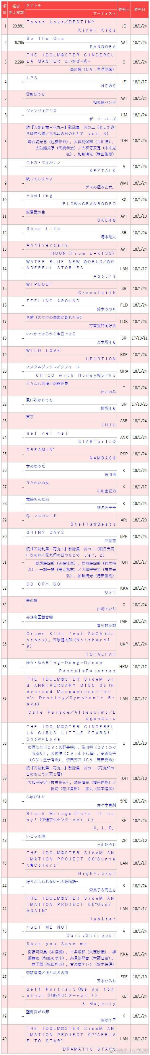 [KinKi Kids] 1/25 오리콘 데일리 싱글 랭킹 : Topaz Love/DESTINY (1위)