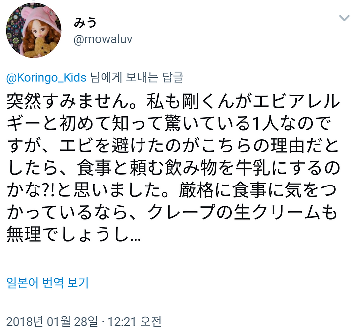 갑자기 죄송합니다. 저도 쯔요시군이 새우 알레르기와 처음 알고 놀라고 있는 한 명이지만, 새우를 피한 것이 이 쪽의 이유라면 밥과 함께 음료수를 우유로 하겠어? 라고 생각했습니다. 엄격히 식사에 신경을 쓰고 있다면 크레이프의 생크림도 무리겠죠...