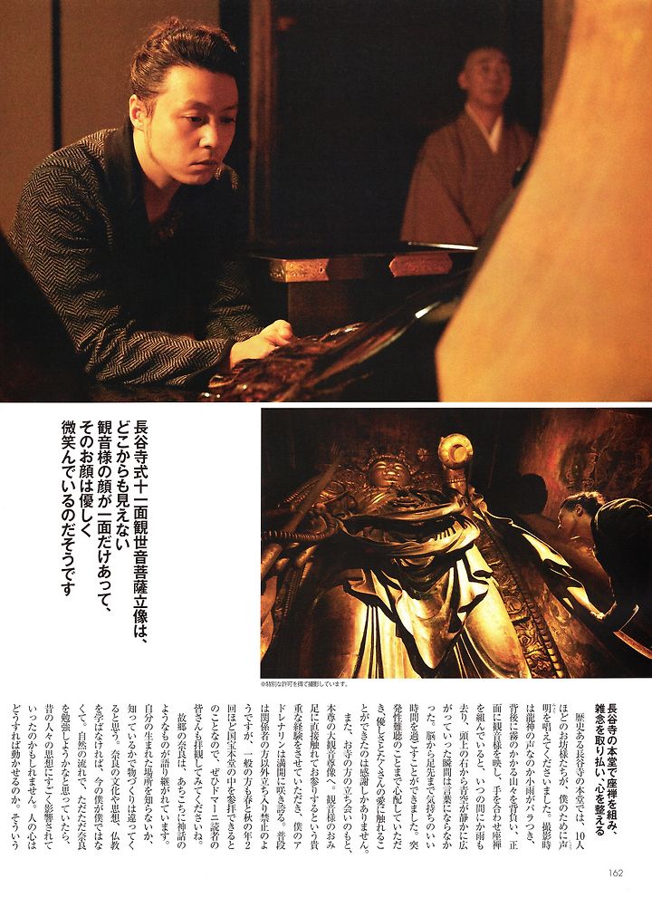 역사가 있는 하세데라의 본당에서는 10명 정도의 스님들이 저를 위해서 성명(声明)을 올려주셨습니다. 촬영 때는 용신의 목소리인지 가랑비가 흩뿌렸고, 등 뒤에 안개가 낀 산들을 뒤로 하고 정면에 관음 사마를 비추며 손을 모아 좌선을 틀고 있었더니 어느새인가 비도 멈추고, 머리 위 오른쪽부터 푸른 하늘이 조용히 펼쳐져 갔던 순간은 말로 할 수 없었습니다. 머리에서 발끝까지 기분 좋은 시간을 보낼 수 있었습니다. 돌발성 난청의 일까지 걱정해주시어 상냥함과 많은 사랑에 접할 수 있었던 것은 감사밖에 없습니다.
