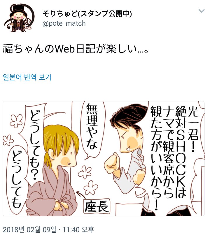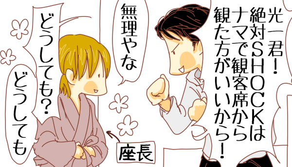 ■ 후쿠다: 코이치군! 절대 SHOCK는 직접 관객석에서 보는 편이 좋으니까!