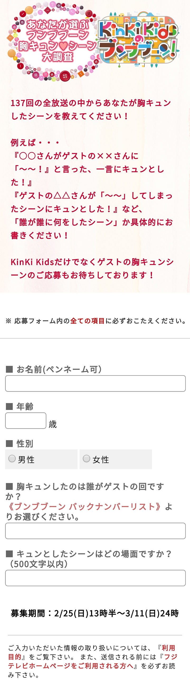 KinKi Kidsだけでなくゲストの胸キュンシーンのご応募もお待ちしております!
