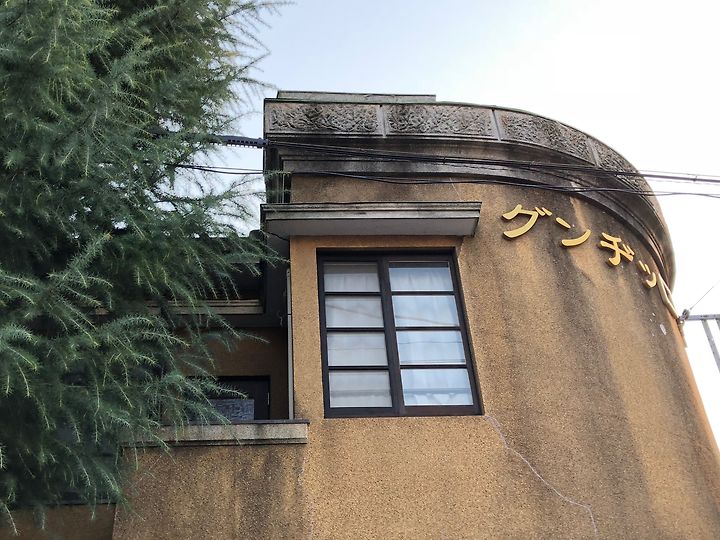 荻窪駅近くの古書店からの帰りに行き当たった旅館...西郊ロッヂング。「グンヂッロ郊西」ではないです。調べたところ1938年の建築。戦時中は右読みになりますね。壁面のアールも良いけし、細部の意匠も凝ってる。塞がれた窓が怖かったけれど......今でも6000円くらいから泊まれるそう。(N)