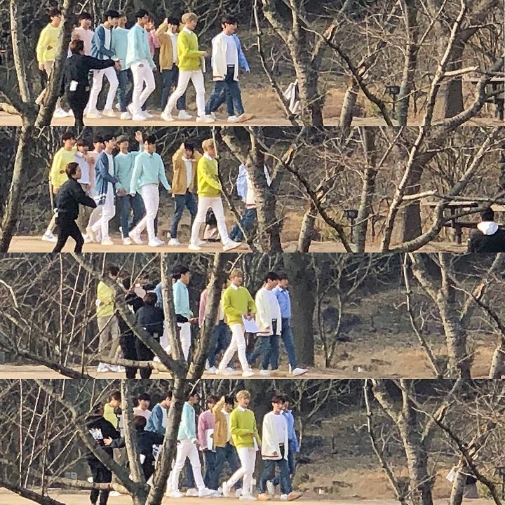여튼 아이들 제주 도착 후 간간히 음식점 등에서 올라오는 목격 제보에 발동동 하다가 이니스프리 까페 쪽에서 촬영하고 있다는 소식에 운전대 바로 틀어서 고고고 했는데 가는 도중 이미 끝났으면 어쩌지 하고 있었으나 도착하니 너무 그 자리에 떡하니 이제 막 촬영 시작하려던 참이었던.