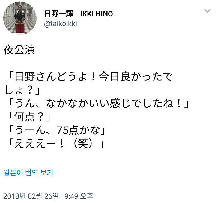 [도모토 코이치] 2/26 히노 잇키상 트윗
