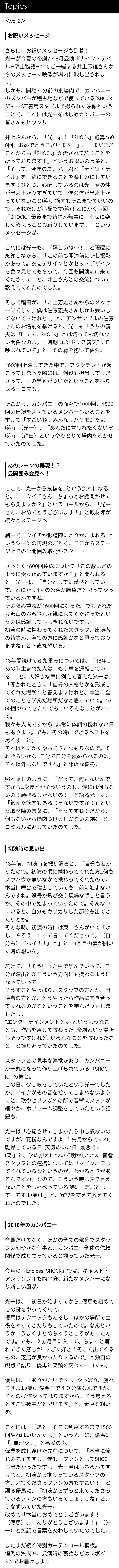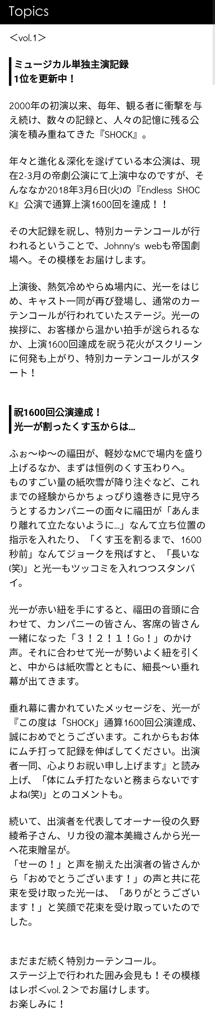 [도모토 코이치] J-web Endless SHOCK 2018 1600회 커튼콜 레포 ①