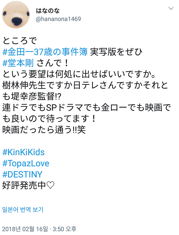 연속 드라마라도, SP드라마라도, 금요일 로드쇼라도, 영화라도 좋으니 기다리겠습니다!