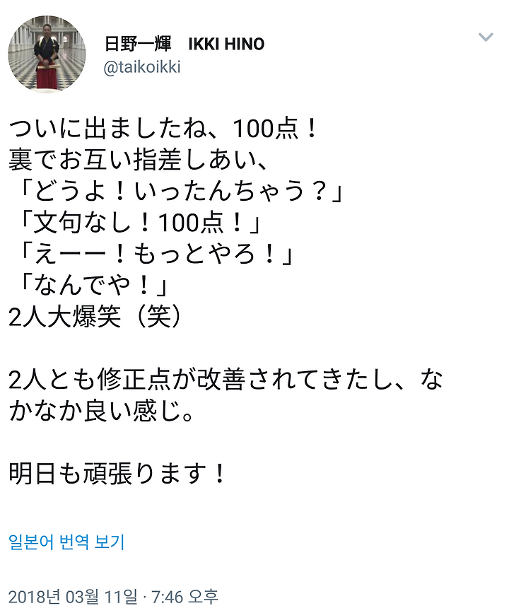 [도모토 코이치] 3/11 히노 잇키상 트윗