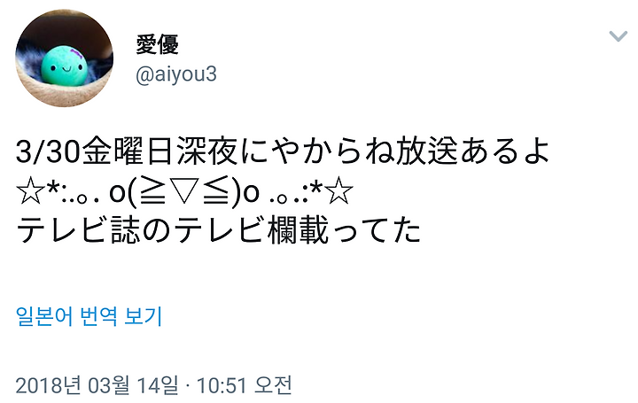 3/30金曜日深夜にやからね放送あるよ☆*:.。. o(≧▽≦)o .。.:*☆