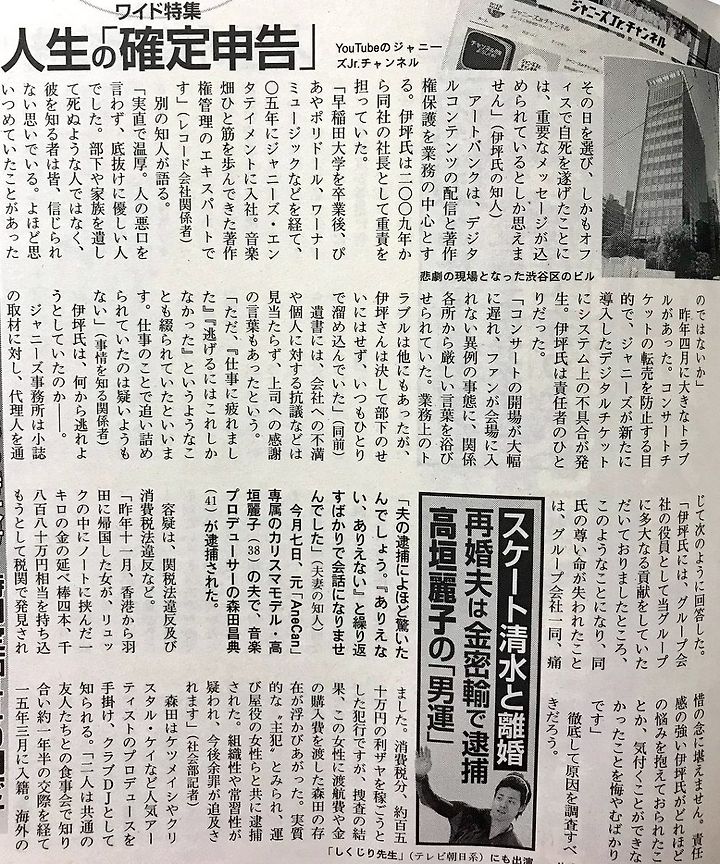 「これまでインターネット展開に慎重だったジャニーズが、YouTubeにジャニーズJr.の公式チャンネルを開設すると発表した日だったのです。伊坪さんがその日に、しかもオフィスで自死を遂げたことには、重要なメッセージが込められているとしか思えません」(伊坪氏の知人)