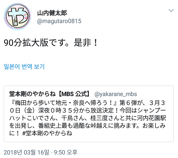 [도모토 쯔요시] 3/16 야마우치 켄타로상 트윗