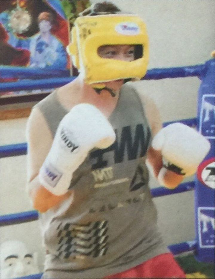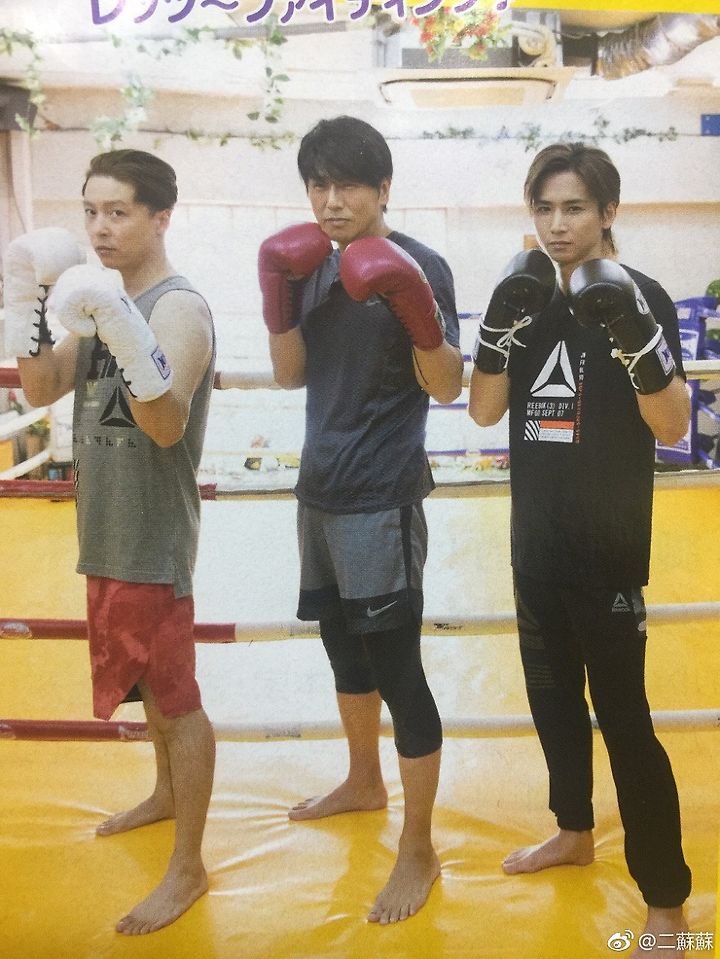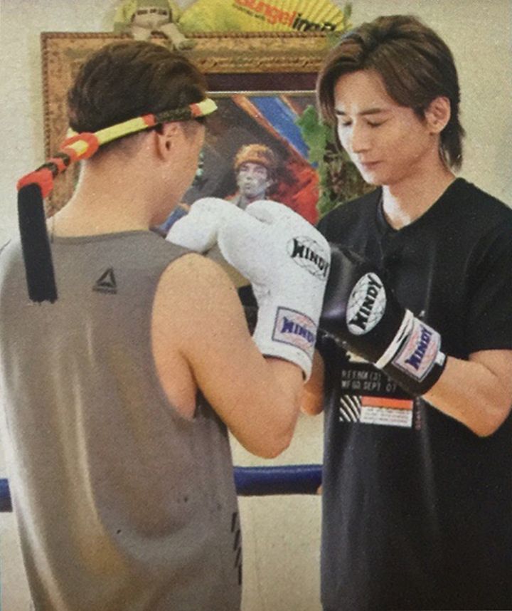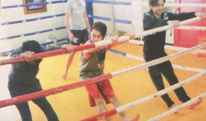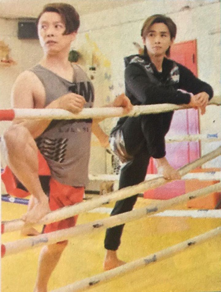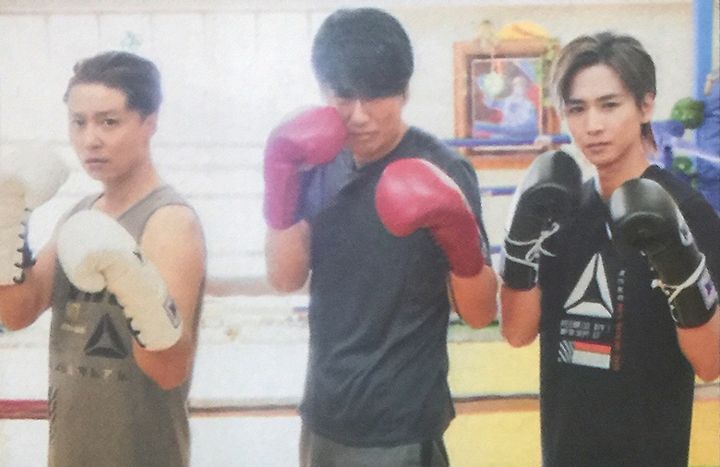 쯔요시는 스태프가 준비한 무에타이의 "몬콘(머리에 쓰는 보호구)"를 장착하고 트레이너로 분한 코이치에게 감사의 기도를 바치는 등 타이의 전통의식을 흉내내며 신나하는. 타카하시가 본보기로 피로한 펀치의 소리에 겁먹으면서도 퍽퍽 치면서 이전 드라마에서 복싱 경험이 있는 쯔요시는 스파링에도 도전하는 것으로.
