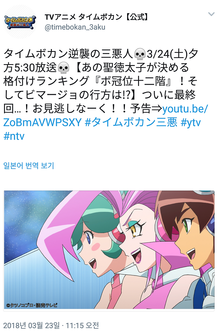 タイムボカン逆襲の三悪人💀3/24(土)夕方5:30放送💀【あの聖徳太子が決める格付けランキング『ボ冠位十二階』!そしてビマージョの行方は!?】ついに最終回…!お見逃しなーく!!予告⇒https://t.co/MnZcsHLszx #タイムボカン三悪 #ytv #ntv