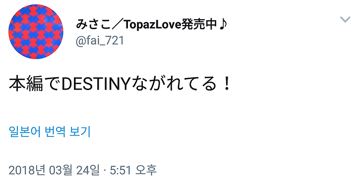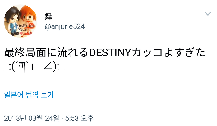 50분 경에 DESTINY가... 정말 하이라이트 장면에서 삽입곡으로 흘렀다구!! 평생 놓지 않겠다잖아!!