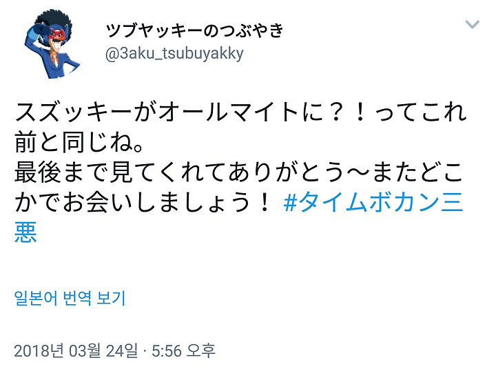 타이무보칸 최종회를 실시간 못했어도 녹화하고 있는 여러분.... 싹뚝하고 엔딩만큼은 남겨놓고 지우지 마!!