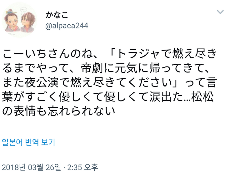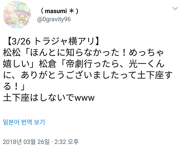 松松「ほんとに知らなかった!めっちゃ嬉しい」松倉「帝劇行ったら、光一くんに、ありがとうございましたって土下座する!」