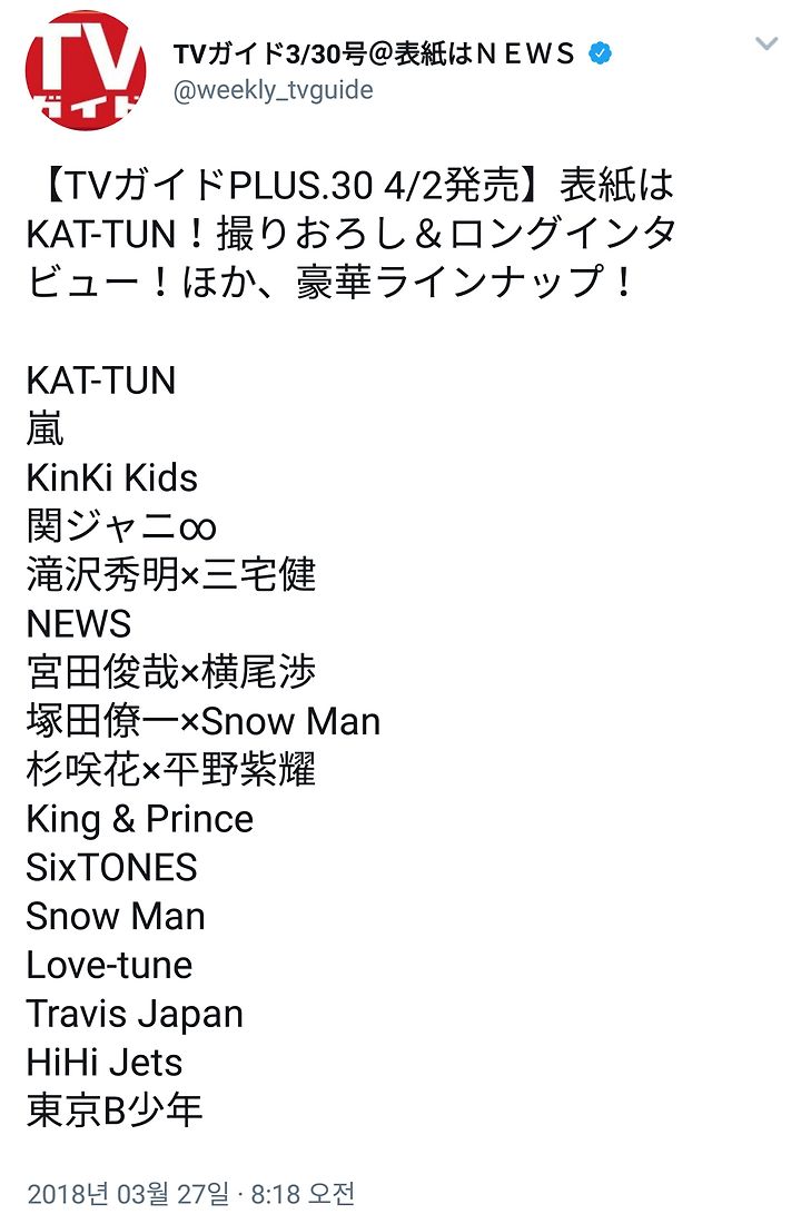 KinKi Kids [KinKi Kids] 4/2 TVガイドPLUS VOL.30 자오딩 2018. 3. 27. 10:01 春の総力密着!KinKi Kids/関ジャニ∞봄의 총력 밀착!킨키 키즈