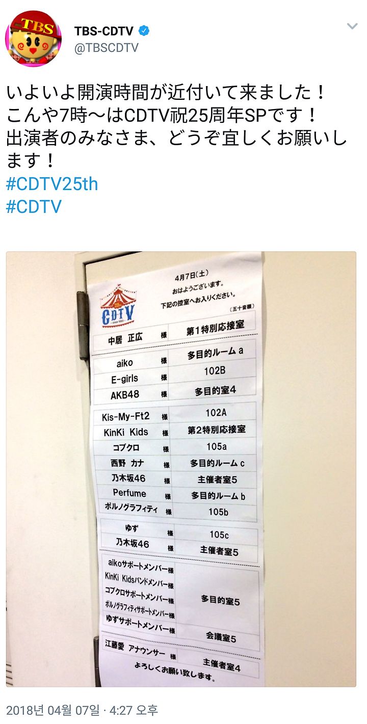 [KinKi Kids] 4/7 CDTV 트윗 (대기실)