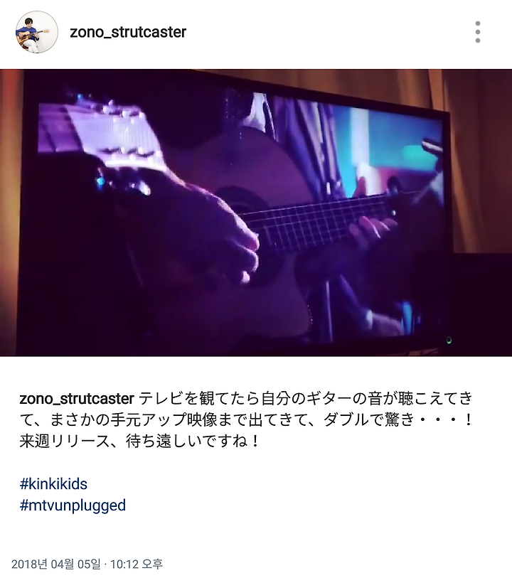 zono_strutcasterテレビを観てたら自分のギターの音が聴こえてきて、まさかの手元アップ映像まで出てきて、ダブルで驚き・・・!