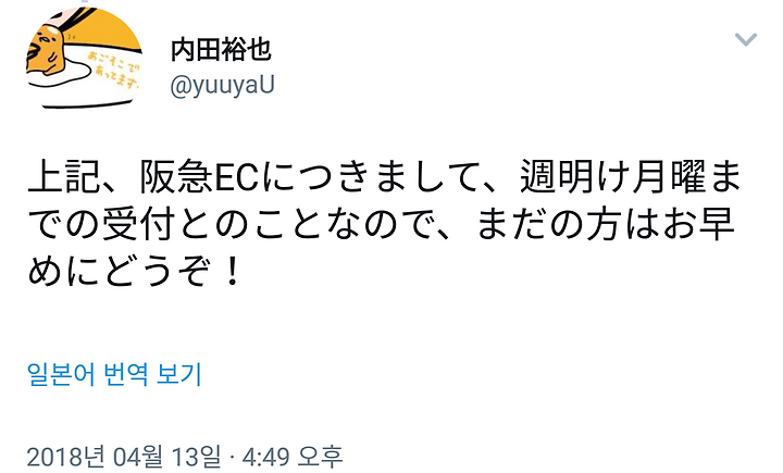 상기 한큐 EC에 관해서 다음 주 월요일까지 접수라는 것으로 아직인 분은 빨리 오세요!