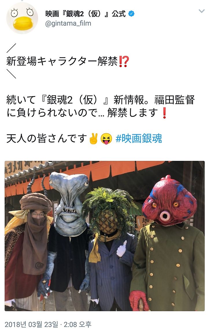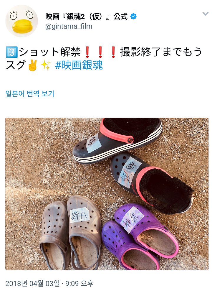 [사과] 『은혼 2(가)』 극찬 촬영 중이므로 모두에게 현장을 리포트하고 싶습니다만 "1을 넘는 대히트는 『바람의 검심 』 수준이라구? 그런 기적을 목표로 하자는 분위기라구. 알겠지? 제대로 투고해줘!" 라고 바다 건너의 높은 사람한테 듣고 무서워서 아무것도 트윗 못했어요.