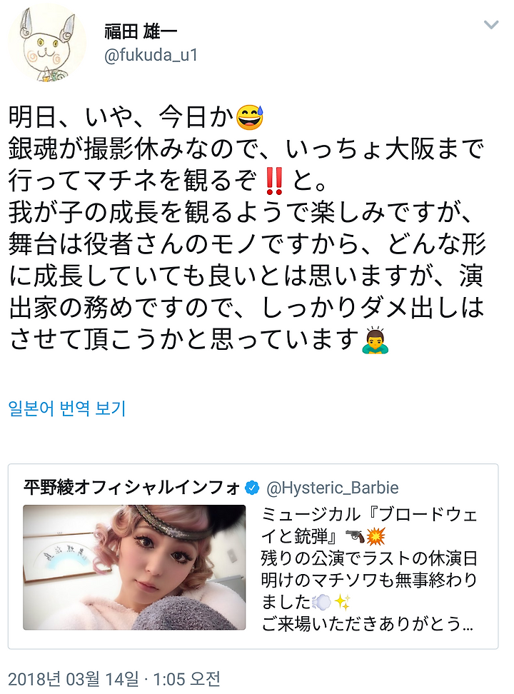 자식의 성장을 보는 것 같아 기대가 큽니다만 무대는 배우의 물건이니까 어떤 형태로 성장해도 좋다고 생각합니다만, 연출가의 의무이기 때문에 제대로 지적은 해드릴까 생각하고 있습니다 🙇 ♂ ️