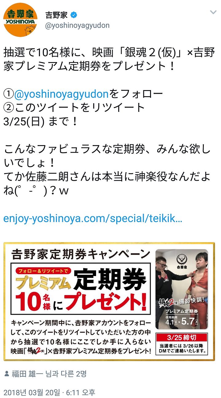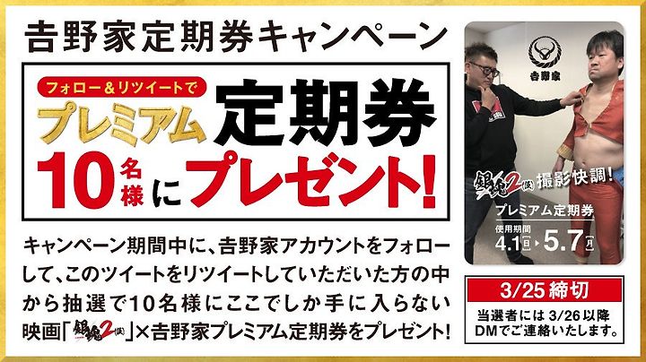 추첨으로 10분께 영화"은혼 2(가)" × 요시노야 프리미엄 정기권을 선물!