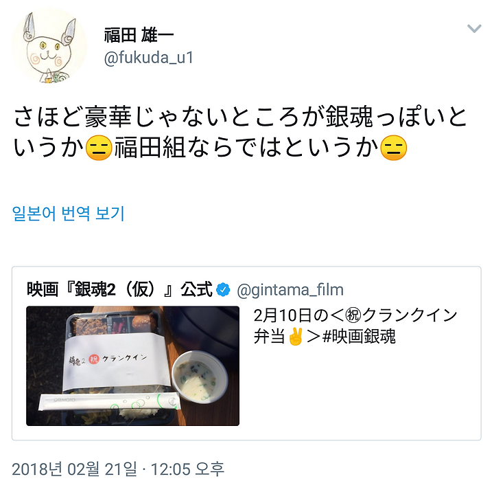 2月10日の<㊗クランクイン弁当✌>#映画銀魂 https://t.co/WPalwKo7JE