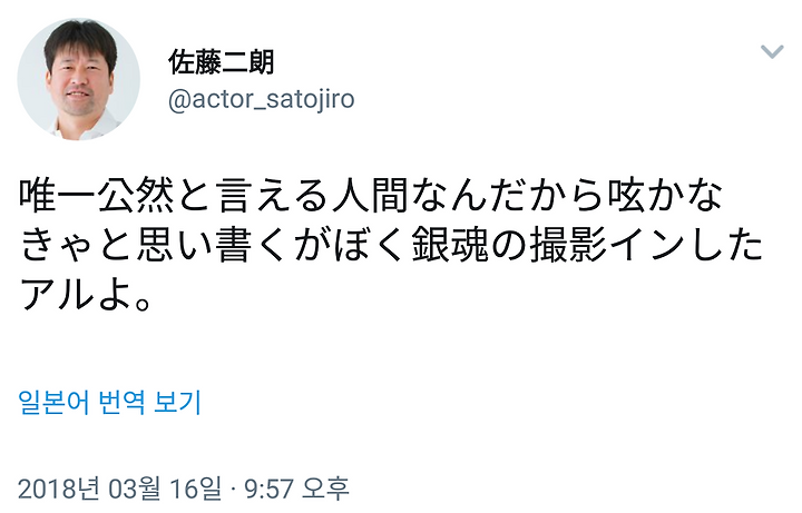유일하게 공공연히 말할 수 있는 인간이기 때문에 트윗하지 않으면 이라고 생각해 씁니다만 저 은혼의 촬영 인했다아루요 (카구라 말투).