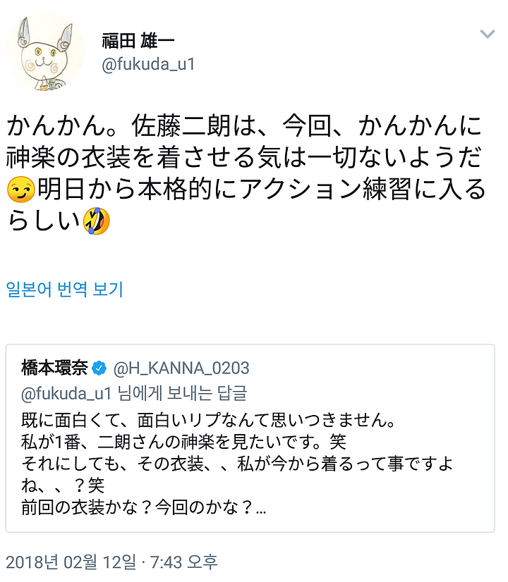 かんかん。佐藤二朗は、今回、かんかんに神楽の衣装を着させる気は一切ないようだ😏明日から本格的にアクション練習に入るらしい🤣 https://t.co/dyeC5YUntM