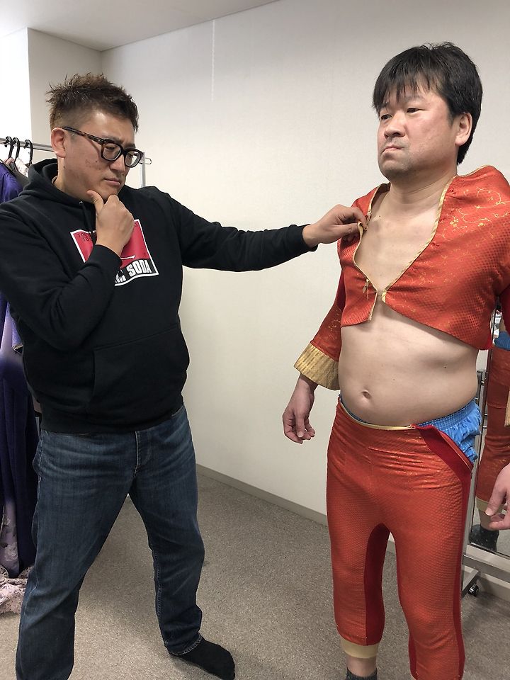 사토 지로상의 의상 맞춤입니다만, 치수를 잰 것 치고는 상당히 작게 만들어져와서 처음부터 다시 고칩니다. 분명히 의상부의 실수입니다!!