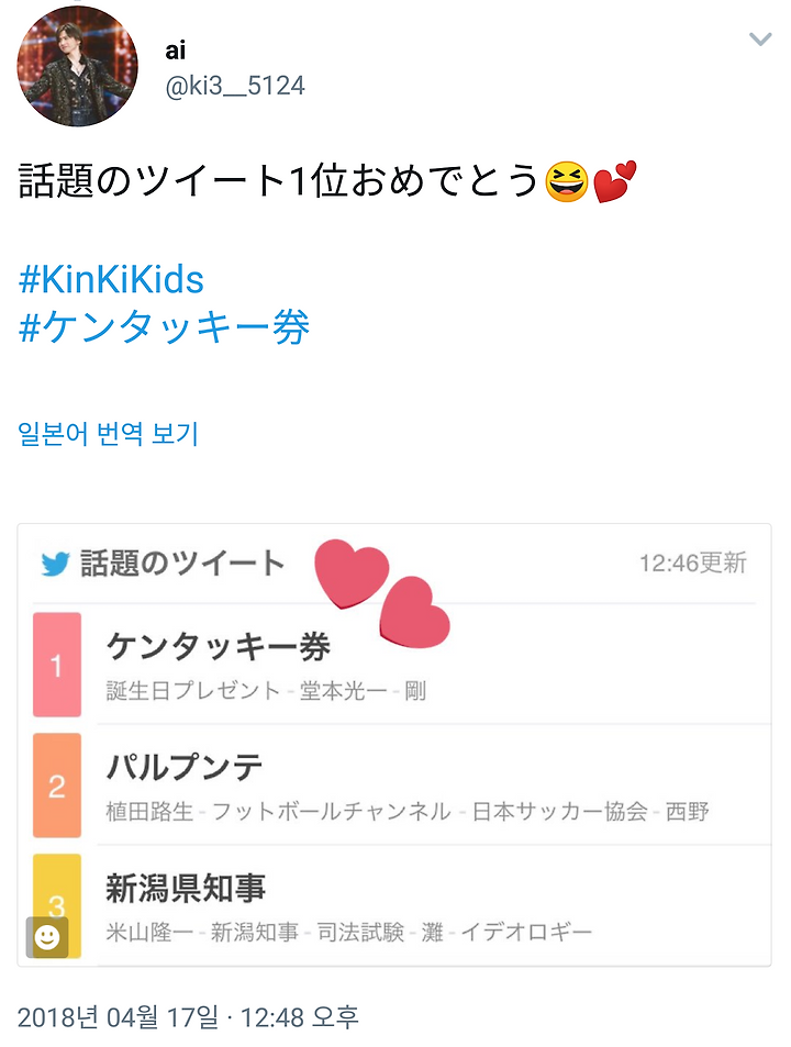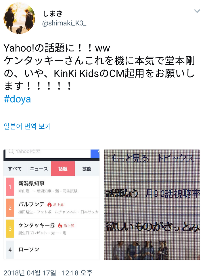 [KinKi Kids] 4/17 야후 & 트위터 실시간 검색어 급등 (12:00 PM)