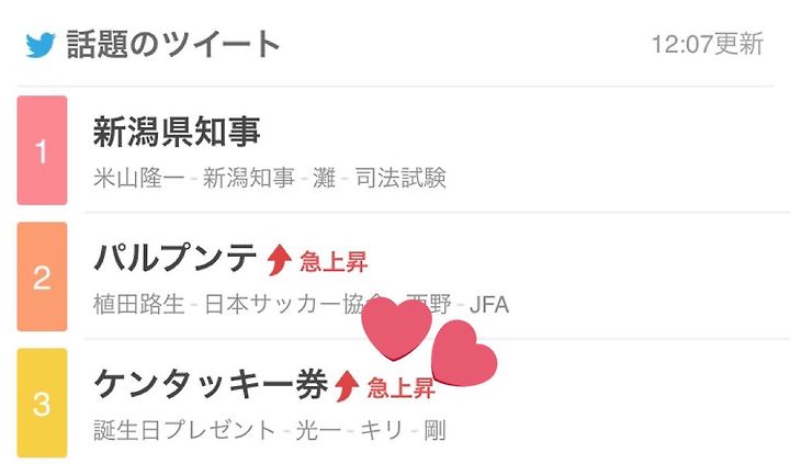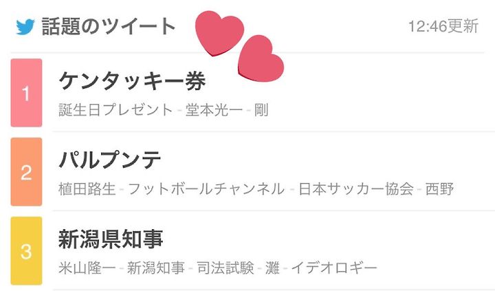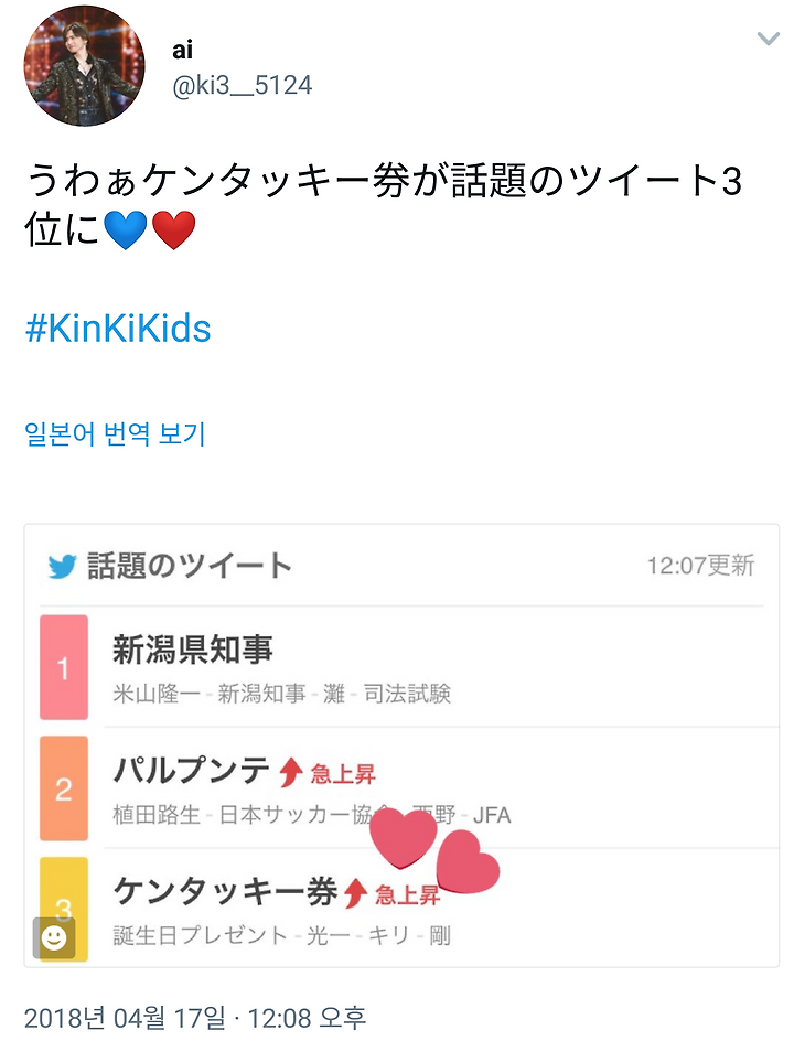 うわぁケンタッキー券が話題のツイート3位に💙❤️