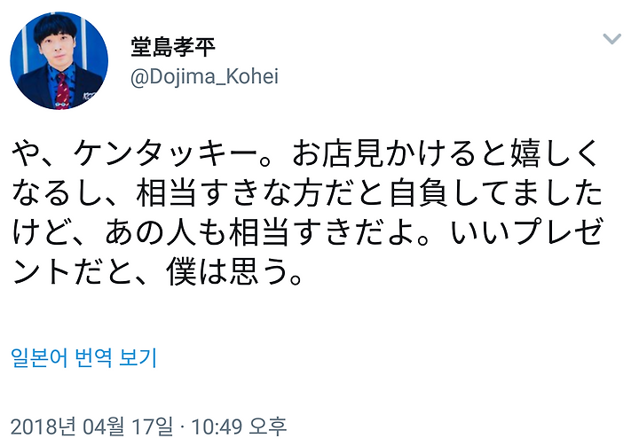 [KinKi Kids] 4/17 도지마 코헤이상 트윗