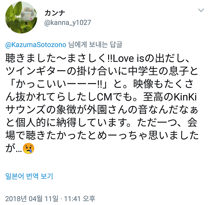 [KinKi Kids] 4/18 소토조노 카즈마상 트윗