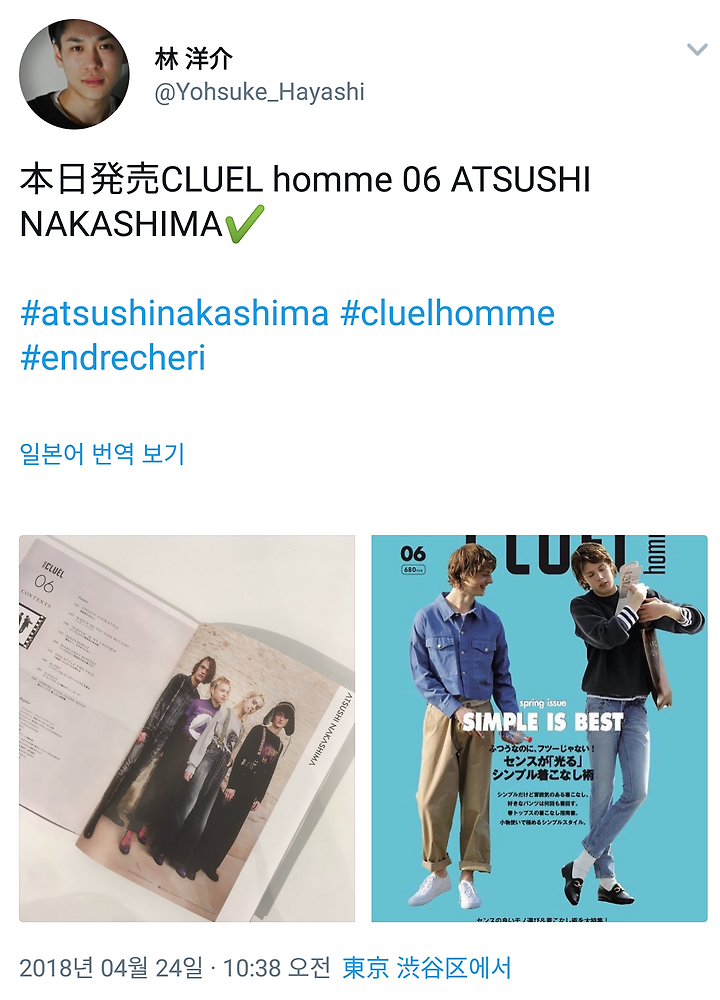 本日発売CLUEL homme 06 ATSUSHI NAKASHIMA✔️