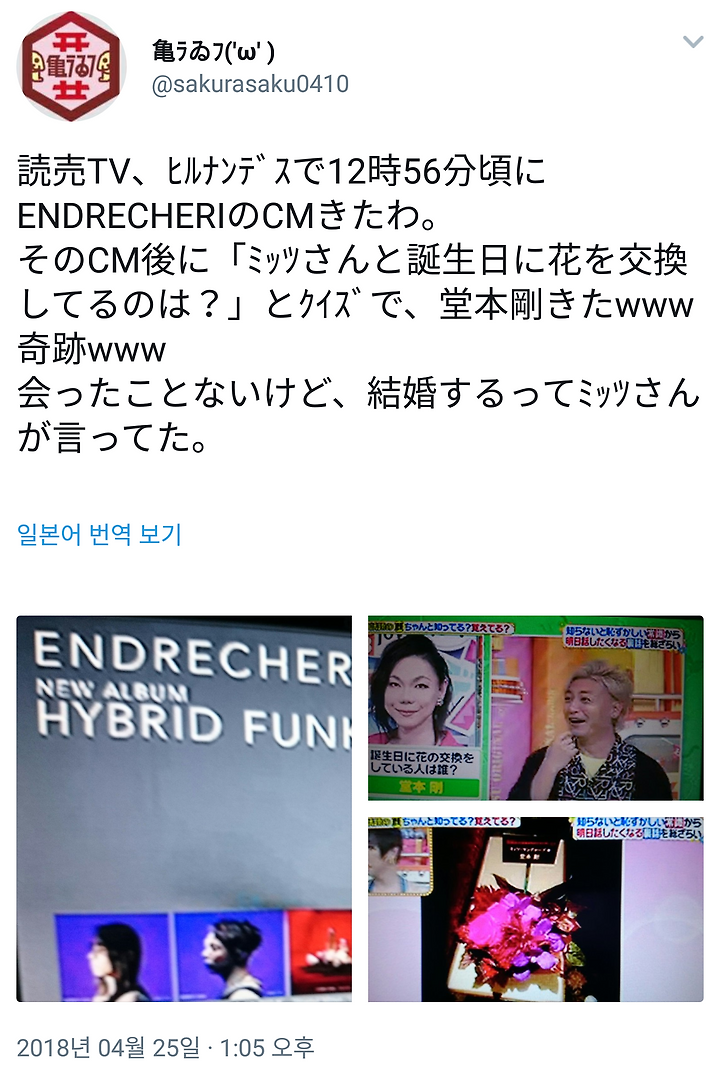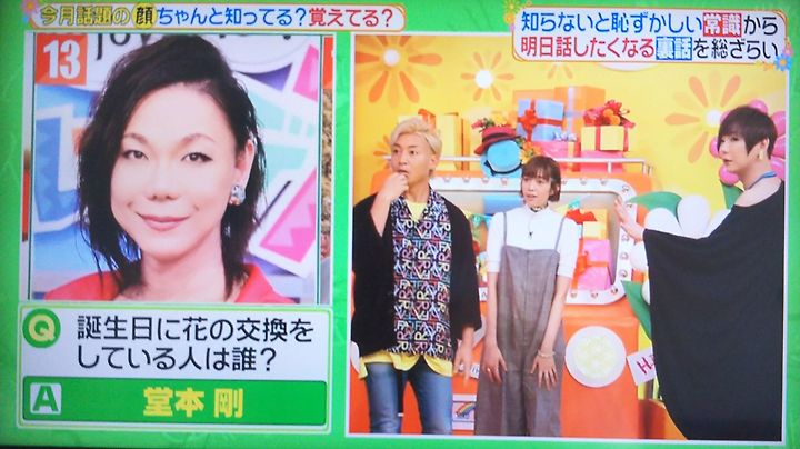 そのCM後に「ミッツさんと誕生日に花を交換してるのは?」とクイズで、堂本剛きたwww