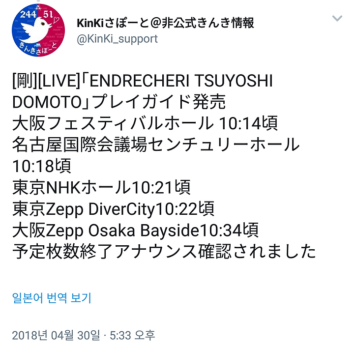 [도모토 쯔요시] 4/30 ENDRECHERI 플레이가이드 일반판매 종료 (10:20경)