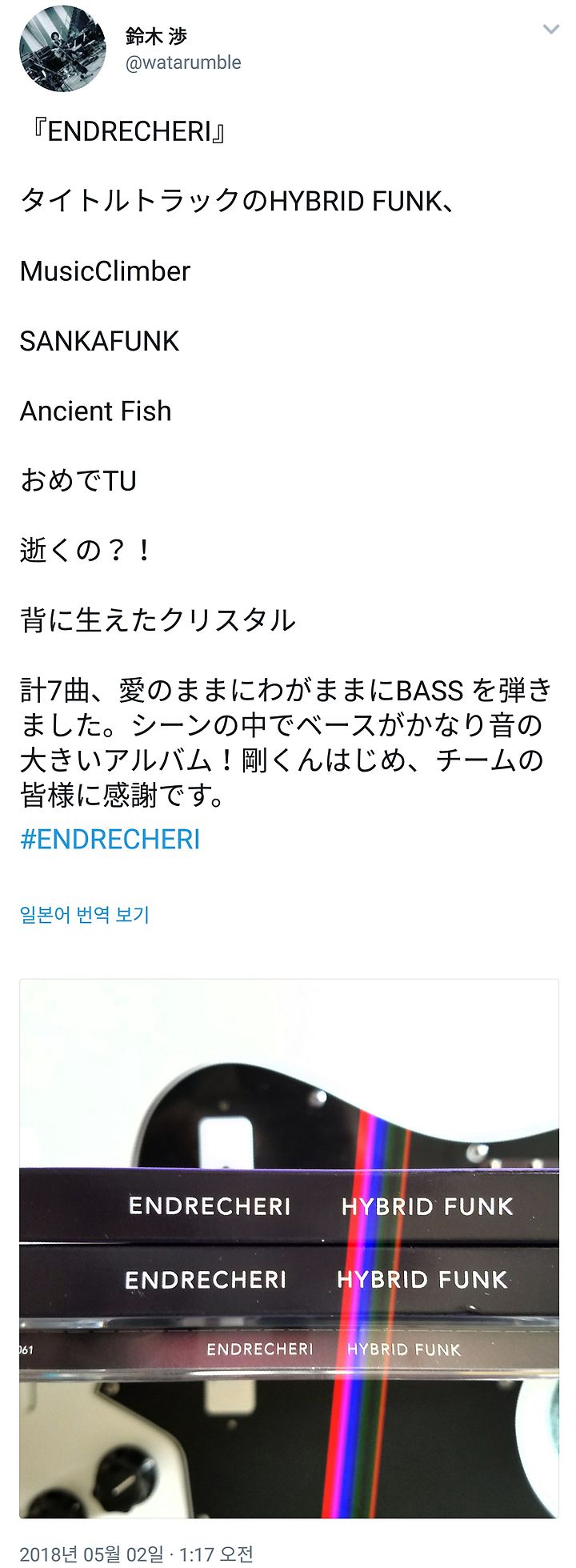 총 7곡, 사랑 그대로 제멋대로 BASS를 쳤습니다. 장면 속에 베이스가 꽤 소리가 큰 앨범! 쯔요시군을 시작으로 팀 여러분에게 감사합니다.