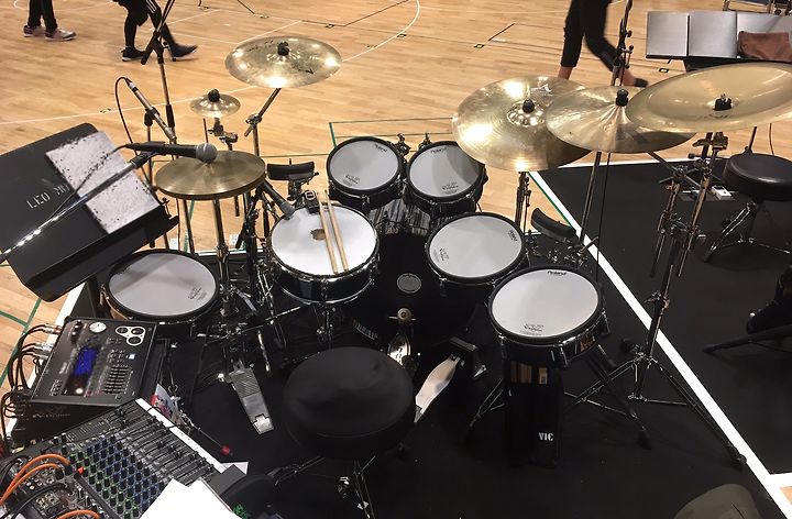 こちらの現場でも、タムは全てメッシュパッドでの「ハイブリッドセット」でいきます
