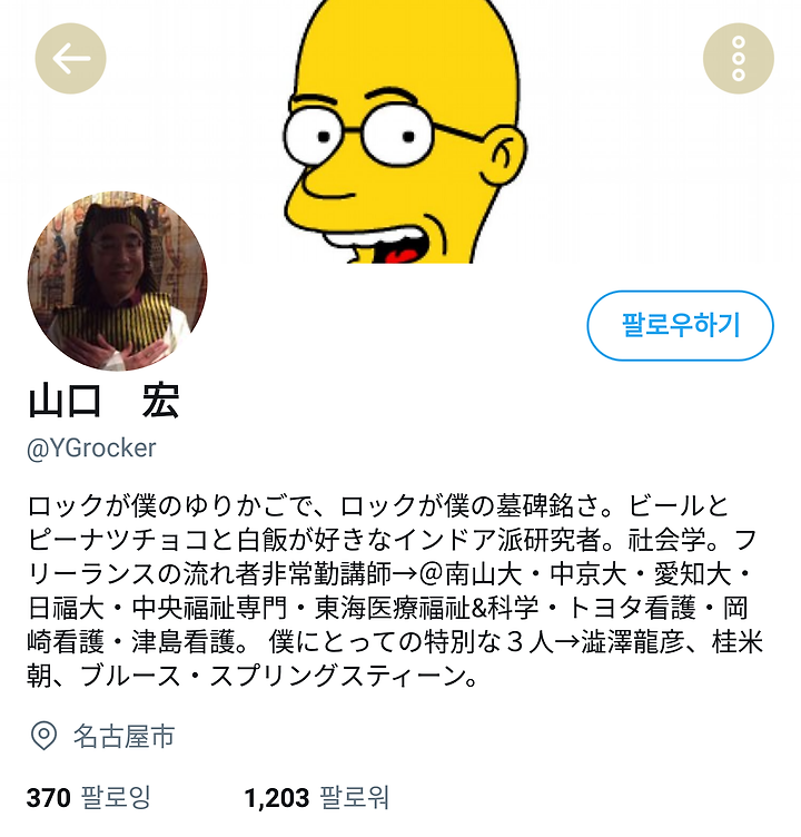 Rock이 나의 요람이고 Rock이 나의 묘비명이야. 맥주와 땅콩 쵸코렛과 백반을 좋아하는 인도어파 연구자. 사회학. 프리랜서의 떠돌이 비상근 강사 → @난잔대·츄쿄대·아이치대·일본 복지대·중앙복지전문대·토카이 의료복지&과학대·토요타 간호대·오카자키 간호대, 츠시마 간호대. 나에게 있어서 특별한 3명 → 시부사와 타츠히코(소설가), 카츠라 베이쵸(라쿠고가), Bruce Springsteen (미국 Rock 가수)
