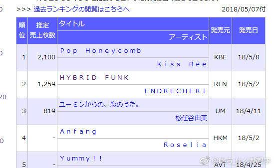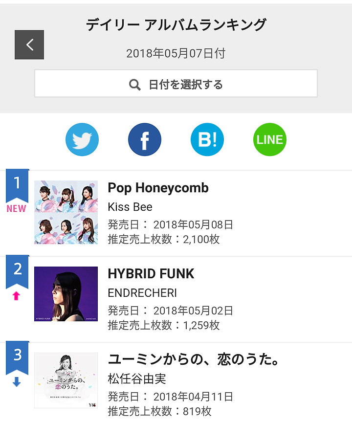 [도모토 쯔요시] 5/7 오리콘 데일리 싱글 랭킹 : HYBRID FUNK (2위)